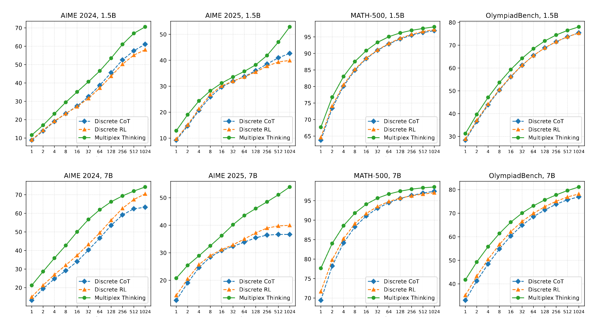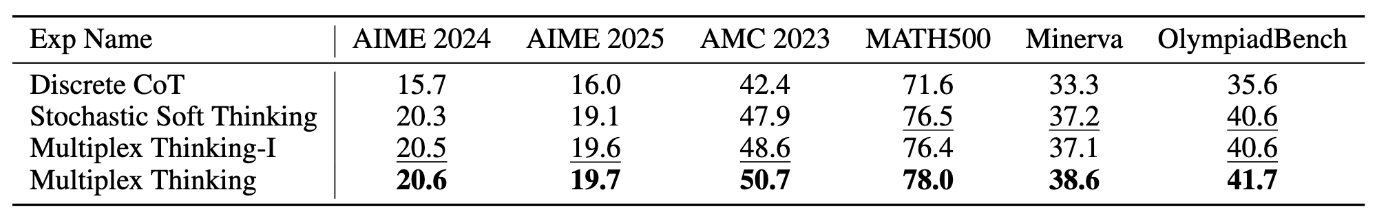 1) Multiplex representations help without training. (Multiplex Thinking-I)